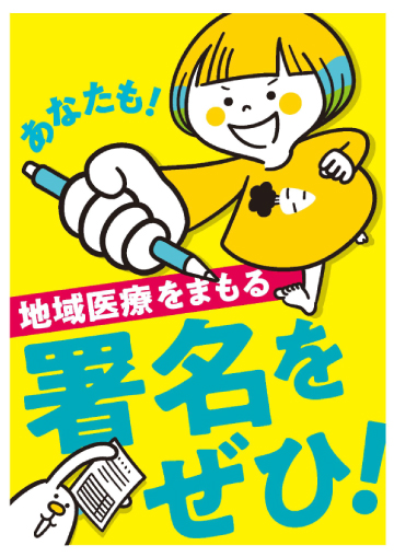 今後とも医療機関の経営を守り、安心して住み続けられる地域であり続けるために、医療従事者も含む地域住民のみなさんに、下記「緊急行動提起」に沿った種々の取り組みへのご協力をよろしくお願い致します。